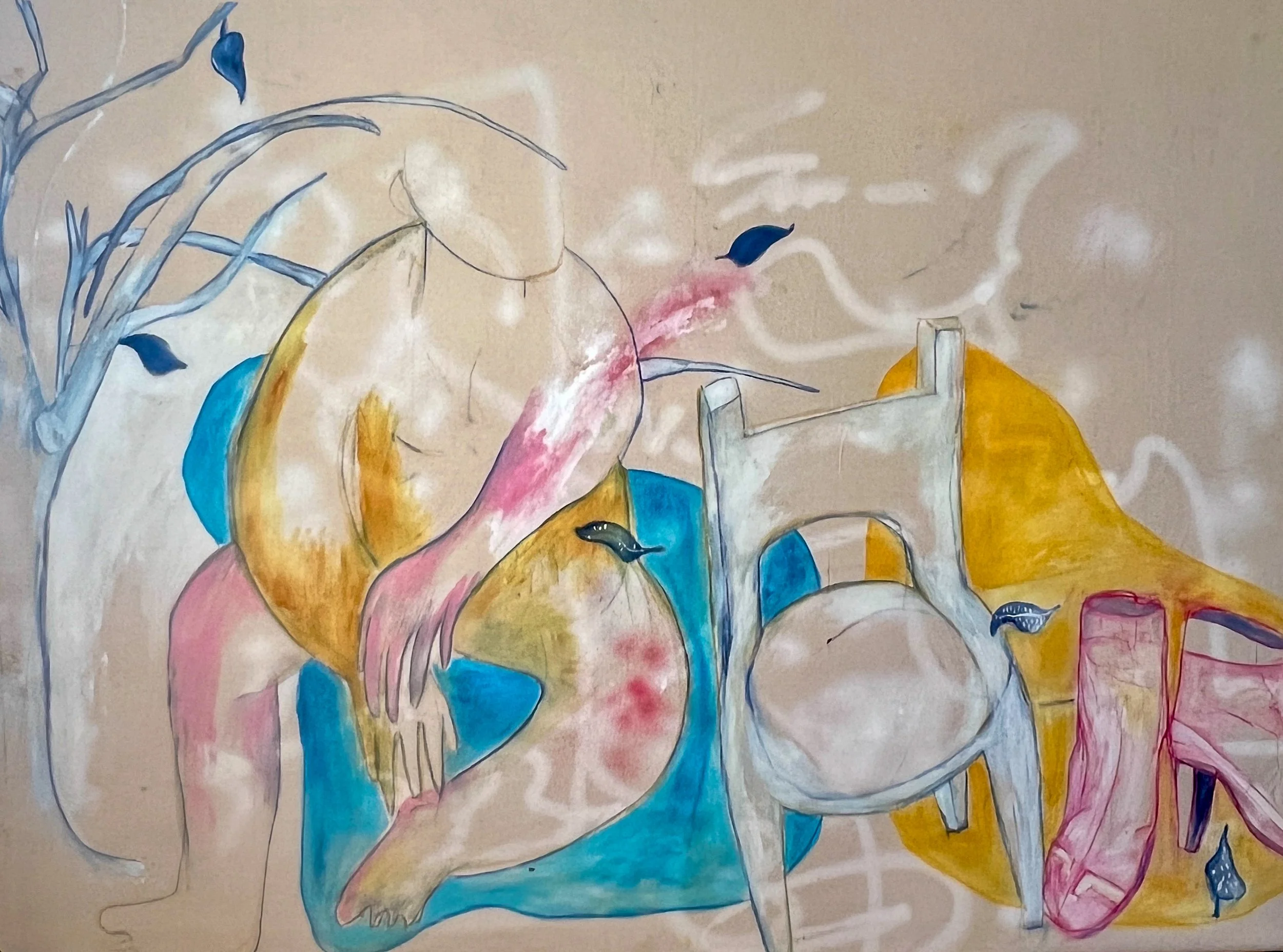 Using a figurative style with expressive brushwork and layered textures, I aim to bridge emotion and environment. The figures are not fully rendered nor fully abstract—they exist in the space between, echoing our complicated relationship with the world that sustains us. The palette draws on earth tones, water hues, and seasonal transitions to evoke both harmony and tension.