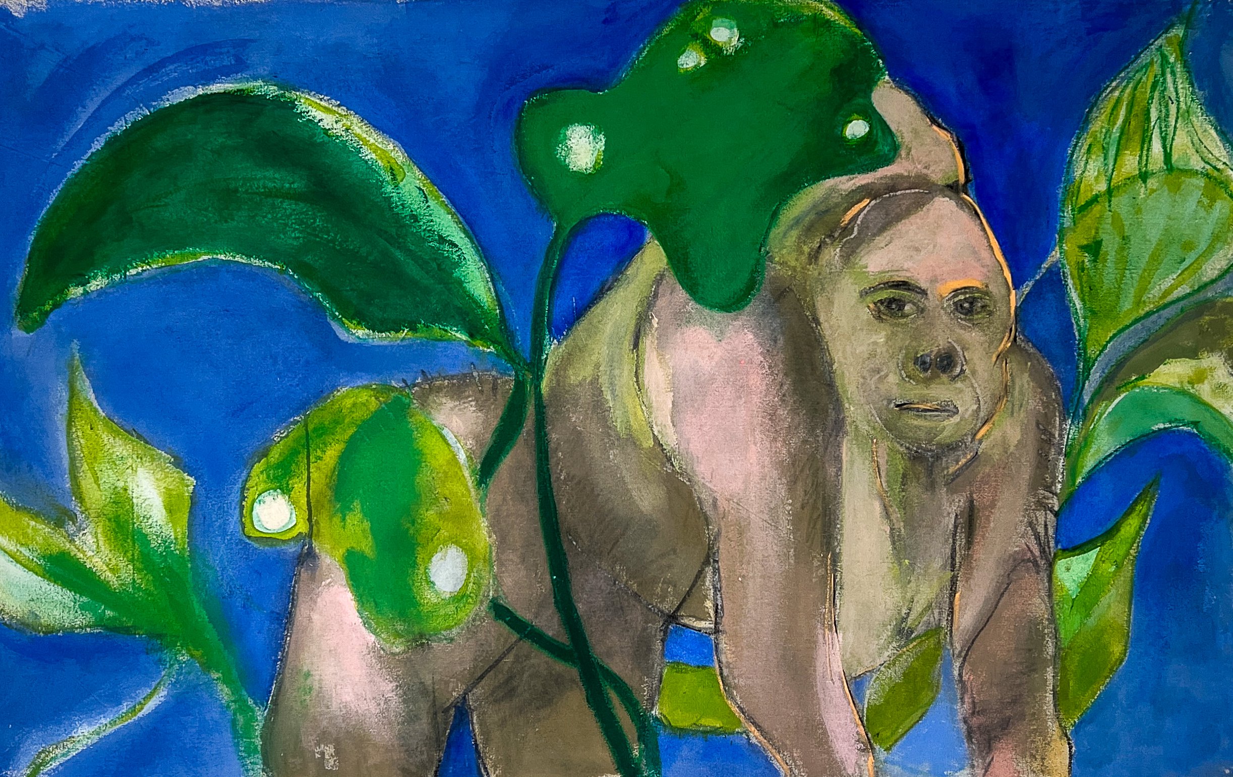 This show is about imagining people back in nature—not just surrounded by it, but part of it again. Each piece captures a fleeting moment: a figure waiting under a tree, a body blending into water, a gorilla standing in the silence, a gaze lost in the wild. moments of unity, survival, waiting, and memory.